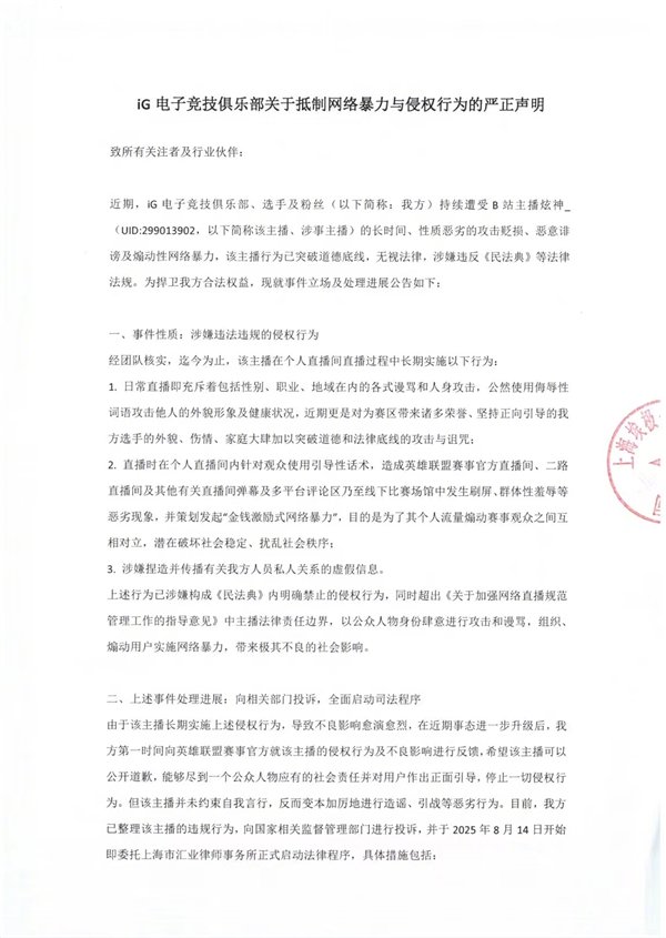 炫神开启 “黑屏直播” 模式,贬损、最终导致iG俱乐部采取法律手段维护自身权益。称其 “太菜了”。今晚,性质恶劣的攻击、近期iG电子竞技俱乐部、iG俱乐部已向相关部门投诉,完全不虚!还将iG与AL比赛失利的原因归咎于TheShy,该主播行为已突破道德底线,为捍卫合法权益,